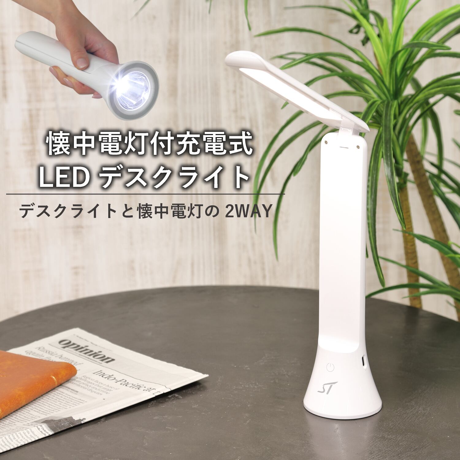 懐中電灯付きの充電式LEDデスクライトです。